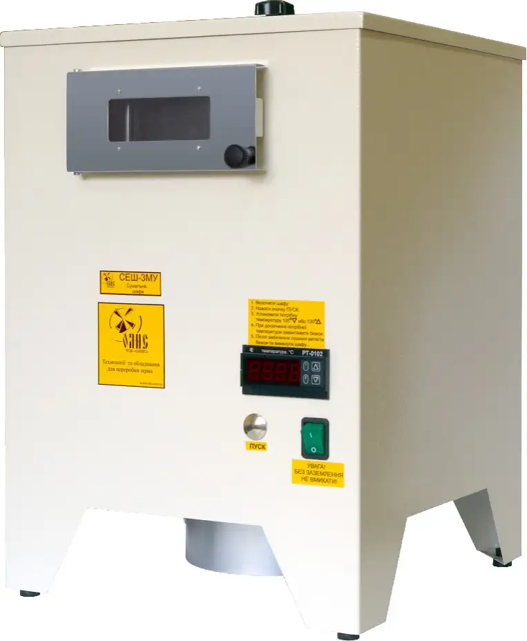 According to GOST 13586.5-93 moisture determination is carried out by dehydration of the product sample in an air-heat oven at a fixed temperature and duration of drying, with subsequent determination of the mass-loss sample. These guests to set the method implementation of this method is designated list of necessary equipment and required its characteristics. In view of special importance, when implementing this method, strict requirements are imposed on air-heat oven, used for drying samples. Distinctive features of the cabinet must be: high accuracy of temperature of heated air flow uniformity in its internal volume of the drying chamber, and placing portions of dried samples in the sample bottle on a table rotating with a given frequency. According to GOST 13586.5-93 meets these requirements recommended to use oven ENR-3M. Therefore, drying cupboard ENR-3M-equipped and continue to be equipped with all the accreditation of the laboratory quality control of grain. Nevertheless, the ENR-3M developed more than fifty years ago, and survives today almost intact. It is using obsolete technical solutions and the element base attributable performance problems ENR-3M, the well-known and very bored with the laboratory staff. Attempts to install at the cabinet of the electronic unit to maintain the temperature could not fundamentally resolve the claim to the health unit. Breakdown in the mechanical part, failures and deviations in the temperature control is still generate a huge number of failures, which, together with the existing security problems cast doubt on the operation of such a device. By reviewing the circumstances of long-overdue need for an oven, not only deprived of the described shortcomings, but also of the modern concepts of industrial design, ergonomics and safety requirements.