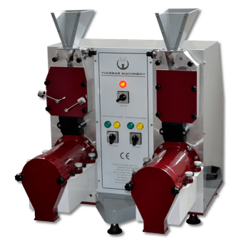 Принцип роботи: вихідний продукт з завантажувального бункеру потрапляє у робочу камеру, в якій взаємодіє з обертовими шліфувальними кругами і ситом. Завдяки інтенсивному тертю зерна, як об поверхню шліфувальних кругів, так і об поверхню сита, відбувається відділення оболонок від зерна і їх стирання в дрібні частинки. Дрібні частинки оболонок проходять через ситову обичайку, з діаметром отворів 2,0 мм, і потрапляють у збірні контейнери для мучки. Після закінчення встановленого часу лущення / шліфування та зупинки шліфувальних кругів, користувачем відкривається засувка, і оброблений продукт (лущене зерно) надходить у збірний контейнер для основного продукту.