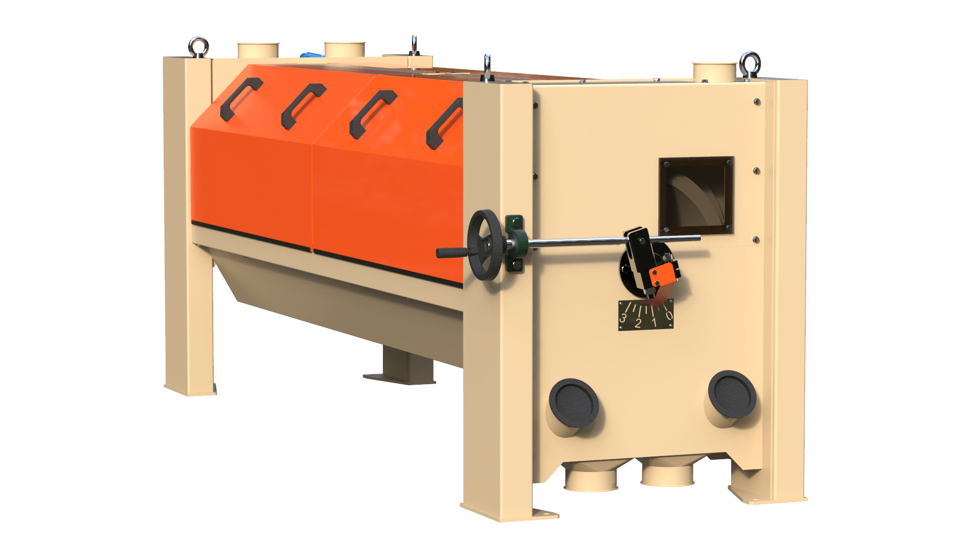 - Przewidziane jest regulowanie składanej rynny w zakresie 0-90º, co umożliwia maksymalnie efektywne rodzielanie mieszanki;